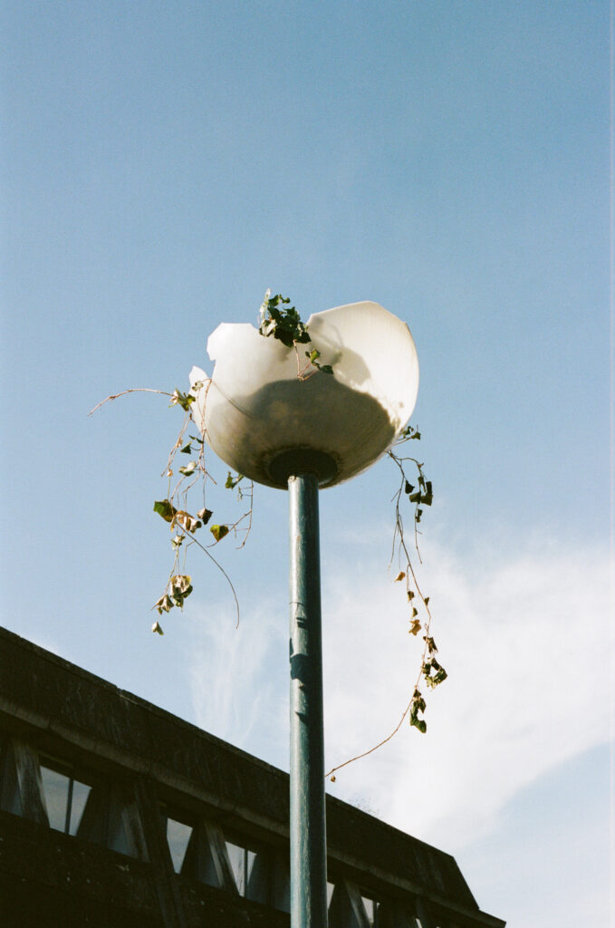 On a grey Thursday in September, I visit the Mäusebunker to meet with Roberta Jurčić and Jonas Janke, two partners at b+ who have been working on the proposal in dialogue with Berlin’s Heritage Authority since the building was listed in 2023. 3 Prior to this the practice had already been engaging with possible future uses for the site through a master’s studio led by Brandlhuber at ETH Zurich in 2020, which later formed the basis for plans exhibited at Suddenly Wonderful, an exhibition held at the Berlinische Galerie Museum of Modern Art in 2023 that aimed to celebrate and speculate on new futures for iconic 1970s Berlin architecture. The building itself is officially off limits due to health and safety fears around air quality, although several smashed windows hint that people have been finding their own way inside. Following the perimeter of the site we make a slow loop of the building.